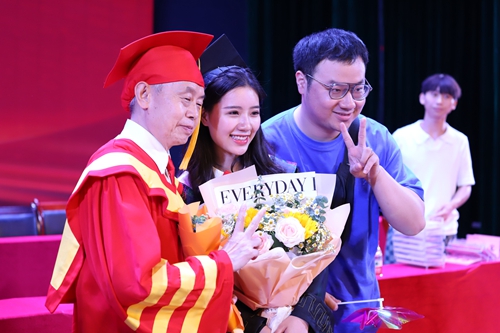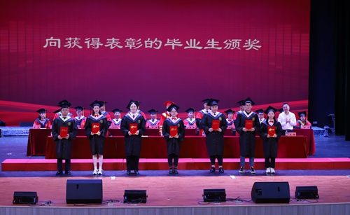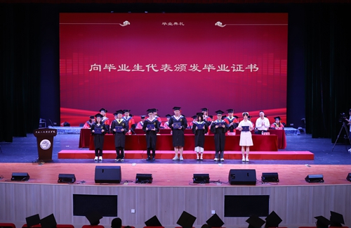 随后,毕业生代表登台领取毕业证书;