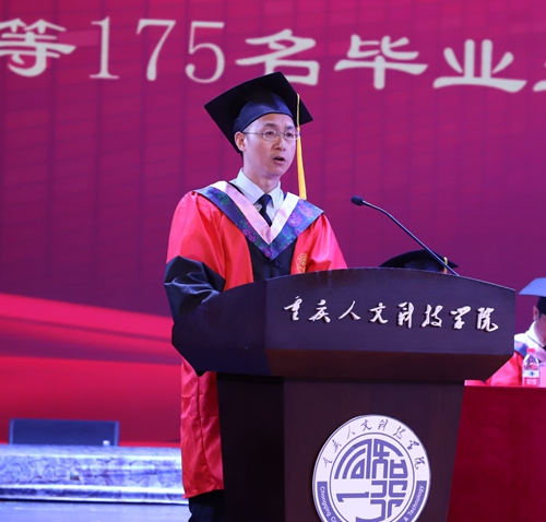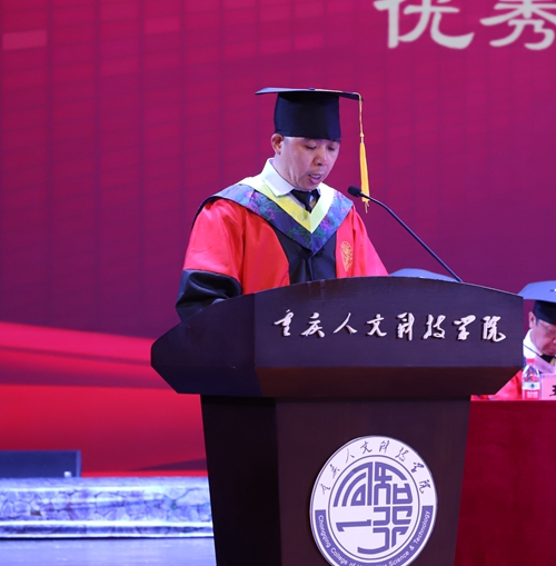 学校学位评定委员会委员、纪委书记、副校长程荣尧宣读学校《关于公布重庆市普通高校2022年优秀大学毕业生名单的通知》;