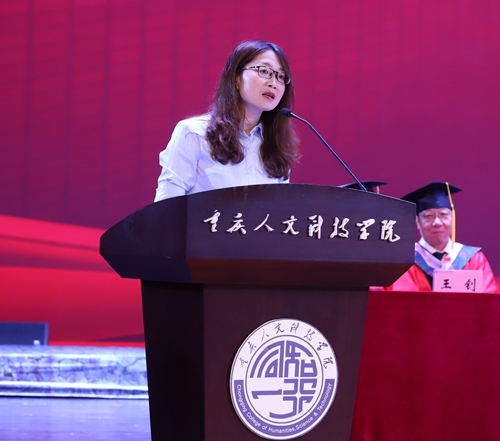 教师代表、政治与法律学院教师豆思雨登台送上了全体教师的最后一次谆谆教导。一是请坚守法律底线,进退有据。二是请常怀感恩之心,体味美好。三是请保持学习习惯,纯良心性。同时希望毕业典礼暨学位授予仪式于全体同学不仅是一个华丽的句点,更是一个崭新的学习起点。
