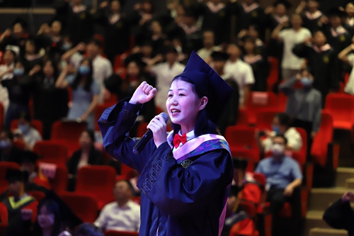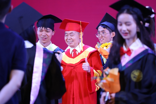 整场典礼、仪式在《成都》改编的歌曲《人科》中温情落幕。“让我掉下眼泪的,不止毕业的酒。让我依依不舍的,不止挥别的手。余路不能伴你走,要学会交朋友,让我感到为难的,是即将的分手……”诸多师生在歌声中泪光闪烁,这里面,既有别意不舍和成功欣慰,更有坚定希望和笃定信心!