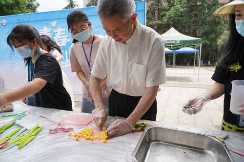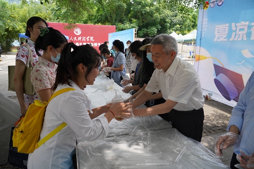 在离会场不远的百川广场上,学校团委还组织开展了“我为同学做实事—夏凉行动、毕业送别”活动,用老师同学们亲手制作的多味可口果茶,祝愿全体毕业生青春不散场,未来坦荡荡!