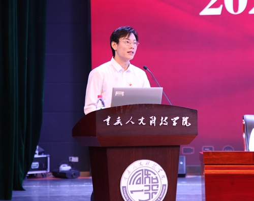 校长张跃光代表全校师生向2022级新同学表示由衷祝贺和热烈欢迎,并以《“孤勇者”的姿态追逐绚烂之光》为题,向全体新生致辞。他在致辞中用“首批”“唯一”“第一”等词简要回顾了学校办学22年的发展成果。希望同学们通过四年的历练,同6万多校友一起跳动在重人科的脉搏里,共同点亮重人科生生不息的精神夜空,成为一个迎难而上坚定逆行的“孤勇者”,一个向阳而生笃定前行的“追光者”,一个知行合一行稳致远的“绽放者”。