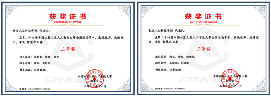 【喜报】 米乐官网两支参赛队伍在第二十四届中国机器人及人工智能大赛中荣获全国三等奖