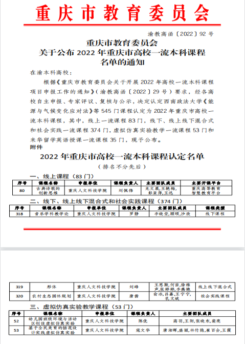 【喜报】学校新增6门课程被认定为重庆市2022年 高校一流本科课程
