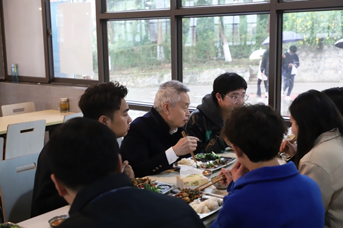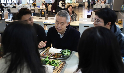 3月23日中午,张跃光校长前往学校智园一食堂,与学生们共进午餐、共话成长,共享美好“食”光,从生活、学习、个人及学校发展等方面与同学们进行了深入交流。