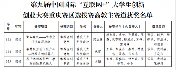近日,第九届中国国际“互联网+”大学生创新创业大赛重庆赛区决赛在重庆交通大学落下帷幕,经过层层选拔角逐,学校申报的“潮车酷洗——无水上门洗车领航者”“智慧农业现代化产品-柑橘采摘机器人”“基于远程控制的一款智能除草机器人”等3个项目荣获本科生创意组市级铜奖。