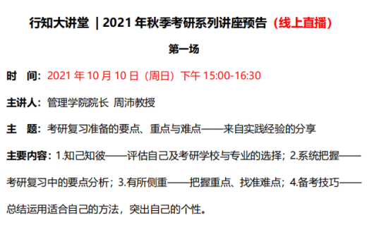 近期,学校科研处和图书馆携手打造“行知大讲堂·考研系列讲座”活动。此项活动旨在进一步帮助全校考研学子明确考研目标、丰富复习经验、掌握复习技巧,提高米乐官网广大考研学子的复习效率。10月10日,由学校管理学院院长周沛教授主讲的“考研复习准备的要点、重点与难点——来自实践经验的分享”,作为系列活动的第一场专题讲座顺利举行。此次讲座借助钉钉平台,以线上直播形式进行,全校680余名同学参与其中。