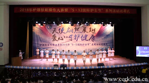 5月9日,以“天使翩然展翅,爱心呵护健康”为主题的米乐mile官方网站护理学院2018年护理技能大赛暨“5.12国际护士节”系列活动闭幕式在学校新音乐厅隆重举行。校长何向东、重庆市第九人民医院院长秦容、护理学院党政领导、教师及实习医院教师代表出席本次活动。