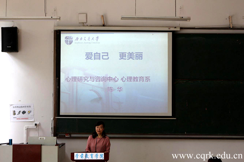 5月29日下午,学前教育学院在丰美楼5101教室开展了主题为“爱自己﹒更美丽—女大学生心理健康”的讲座。学前教育学院师生代表200余人参加了此次讲座。本次讲座由西南交通大学心理研究与咨询中心副主任陈华教授担任主讲,学前教育学院副书记兼副院长高羽主持。