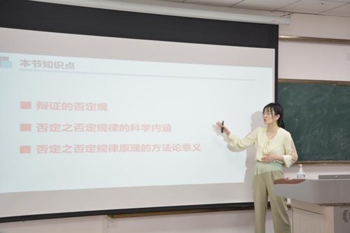 为进一步激发青年教师更新教育理念和掌握现代教学方法的热情,提升教师教学能力水平,提高课堂教学质量,努力打造一支高素质专业化的思想政治理论课教师队伍,5月11日下午,马克思主义学院在16教206教室举行了青年教师教学技能竞赛。校长助理兼教务处处长双海军莅临比赛现场,马克思主义学院资深教授吴文华、曾光霞、袁霞、王立新等出席比赛并担任评委,学院全体教师到场观摩学习。比赛由青年教师郭晓庆主持。