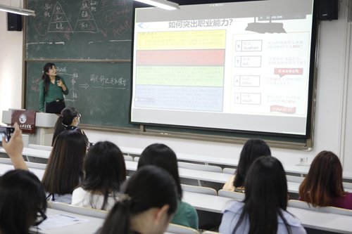 培训中,欧小庆就如何制作一份合格的简历作了简单概括,从简历的作用、结构和撰写原则分三部分讲述。她指出,简历是自我推销的工具,旨在获得面试机会。撰写简历要注意突出一个中心:求职意向;两个基本点:个人信息、教育背景;三种经历:实习经历、社会工作经历、培训经历;此外还要补充所获荣誉、掌握技能和自我评价等关键信息。她强调,简历制作要精于心、简于行、成于细,在投递简历时要根据应聘公司的要求适当调整,突出自身专业技能,以满足用人单位需求。同时还要注重版式设计,达到简约大气的效果。最后,欧小庆详细介绍了用人单位人力资源部门筛选求职简历的流程及毕业生在投递简历时的注意事项,并详细解答了学生在简历制作过程中的困惑和疑问。