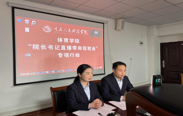 为顺应后疫情时期就业创业工作要求,认真贯彻落实党中央、国务院关于高校毕业生就业工作的决策部署,扎实做好院长书记访企拓岗促就业专项行动,搭建校企双方合作交流平台,为毕业生提供更多的就业机会,11月30日上午体育学院“院长书记直播带岗促就业”专项行动正式开启。体育学院院长兼党总支书记肖宇翔、副书记黄微亲临直播间化身“主播”,以“直播带岗”的形式向毕业生推荐就业岗位。