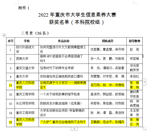 近日,在四川省普通高等学校图书情报委员会和重庆市高等学校图书情报委员会主办的2022年四川省/重庆市大学生信息素养大赛中,米乐官网两支参赛队伍的作品《论桃花源于今夕何方——湖南常德否?》《“火炉”重庆还会继续热下去吗?》荣获三等奖。