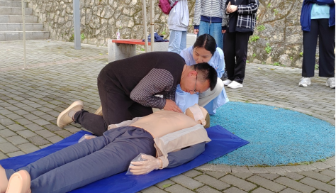 本次活动共分为3个部分:一是七步洗手法的展示与教学;二是应急救护知识宣讲与技能培训,其中包括海姆立克急救法、心肺复苏操作;三是应急救护知识答题。活动现场,老师和同学们井然有序的模拟救护场景,对伤员进行细致的人文关怀,为师生带来了一场别开生面的应急救护课程。