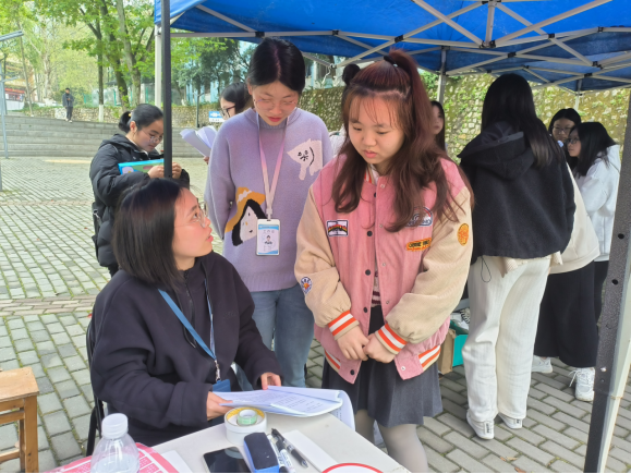 活动主要通过趣味问答和发放法律知识宣传单的方式向同学们宣传法律知识。在现场,两位老师对宣传资料的法律知识进行讲解,并对同学们提出的法律问题进行详细解答。